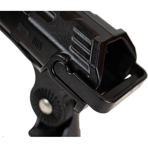 - In adjustment mode, the mount can be rotated in any direction, but cannot be removed, ensuring the rod holder is completely secure while making adjustments, even if a fish hits. Let go of the lever and you are back in locked mode.