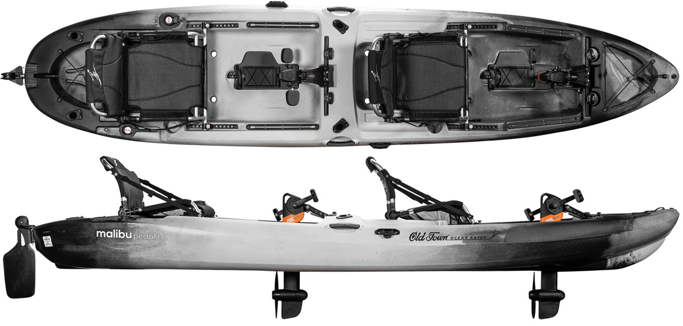 Tandem kayaking made easier with the Ocean Kayak Malibu Pedal T. Designed based on our legendary Malibu models, the Malibu Pedal T is a spacious and comfortable tandem pedal kayak equipped with two forward-and-reverse pedal drives. Capable of navigating a variety of waterbodies, both passengers can pedal without worrying about being in-sync while the rear passenger easily steers the craft using an intuitive rudder control situated beside the stern passenger seat. Featuring breathable and adjustable framed seats, keeping you high and dry and comfortable for hours on the water. Equipped with cupholders, accessory tracks, rod holders, and ample gear storage, the Malibu Pedal T is ready for any outing for years to come.